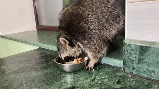 Енот никому не позволит есть из своей тарелки, даже если вы будете долго на него смотреть.