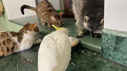 Когда енот сыт, иногда вы даже можете заметить улыбку на его лице.