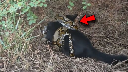 Огромный питон пытался задушить котёнка, но люди вовремя пришли на помощь малышу