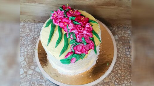 Торт с гладиолусом из Белково-заварного крема. БЗК