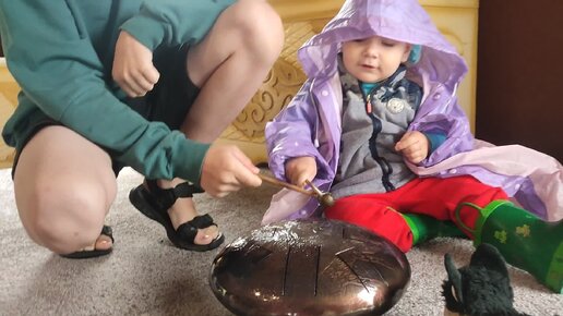 Брат и сестра учатся вместе играть на глюкофоне.