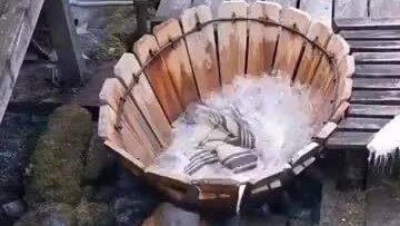 Традиционная стиральная машина, установленная в реке в Румынии