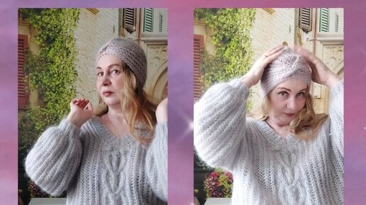 Осенняя Шапочка-Чалма "Мадлен "спицами