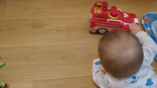 8 мес. Сын научился катать машинки 😊🚒