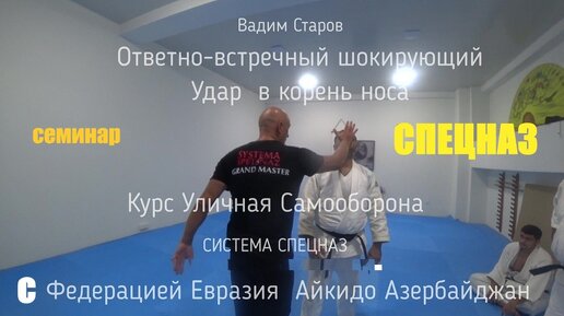 Ответно-встречный шокирующий удар в корень носа. Вадим Старов Курс уличная Самооборона. Айкидо Баку.