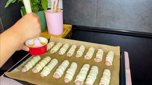 Рецепт из слоеного теста. Всего-то нужны 8 сосисок и 2 листа теста. Быстро и вкусно!