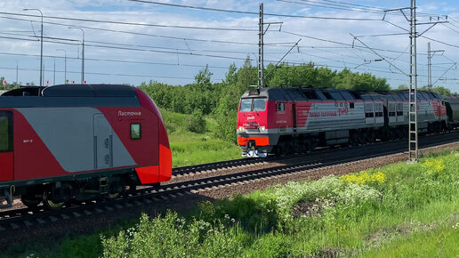 Красивая встреча шустрой Ласточки и именного тепловоза на перегоне в кривой