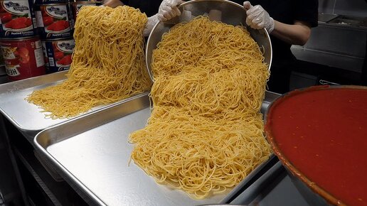 200-квадратный метр паста-ресторан! Приготовление пасты с креветками, сливками, розовым соусом и хлебом