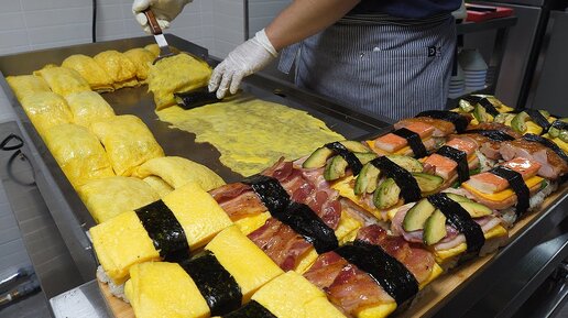 Ролл с яйцом и омлет-рис - Корейская уличная еда