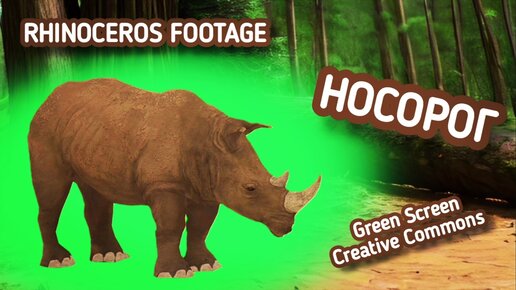 Носорог green screen футаж. Хромакей анимация носорог на зелёном фоне.