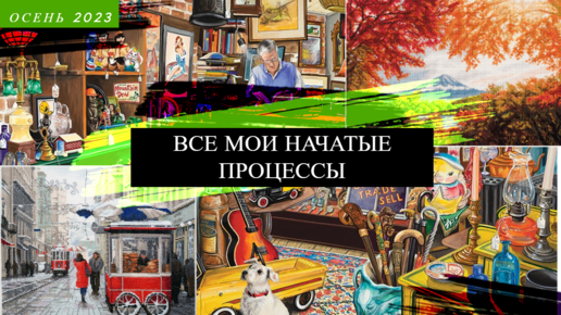 Все мои начатые вышивальные процессы на осень 2023 года. Наборы и многоцветка по своей разработке)