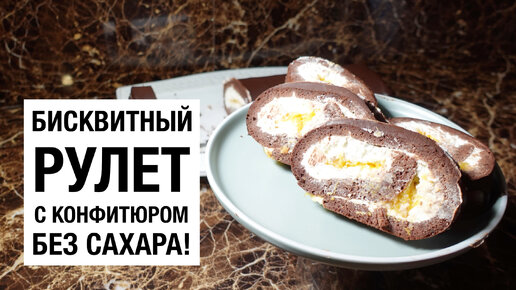 Бисквитный рулет с апельсиновым конфитюром без сахара! простой и вкусный #рецепт