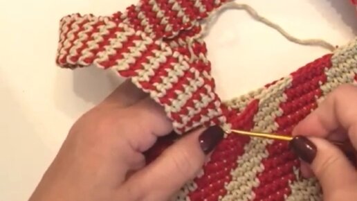Легко соединяем детали вязаной сумки с помощью крючка.