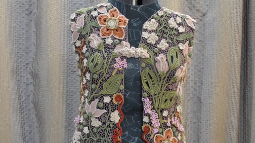 Нарядный жилет-кардиган . Ирландское кружево. Оригинальная модель. Модное вязание крючком.