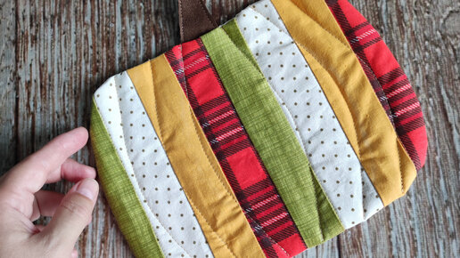 Осенний пэчворк - подставка под горячее Тыква. Ланчмат. Украсит кухню осенними яркими красками.