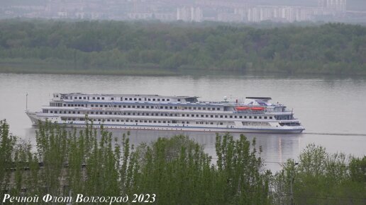 Пассажирский теплоход Максим Литвинов проходит Красноармейский район Волгограда.