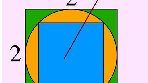Круг вписан в зелёный квадрат со стороной 2, а в круг вписан синий квадрат. Найти площадь синего квадрата