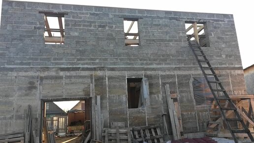 Крайний ряд блока на ребро, мауэрлат, балки перекрытий.