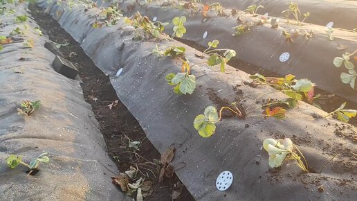 Рассаживаем клубнику под агротекстиль.