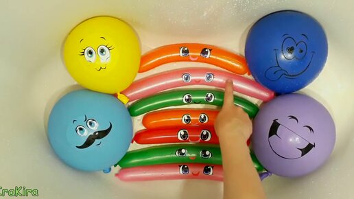 Лопаем воздушные шарики с водой! Учим цвета на русском языке! Песенка Семья пальчиков!