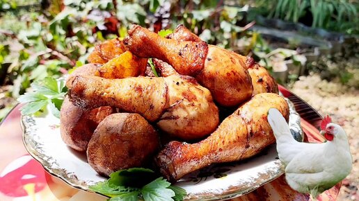 КУРИНЫЕ ГОЛЕНИ В МЕДОВО-ЧЕСНОЧНОМ МАРИНАДЕ И КАРТОФЕЛЬ В КАЗАНЕ НА КОСТРЕ.🍗🥔🔥