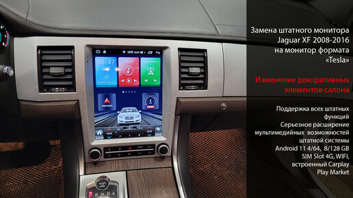 Jaguar XF 2008-2016 монитор Tesla Style, замена декоративных элементов салона
