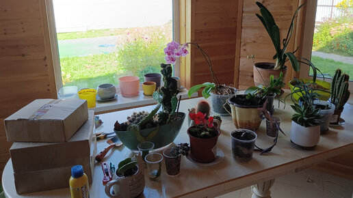 Большое наведение порядка в горшках. Пересадка кактусов, эхеверии и других растений.