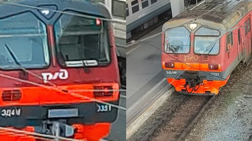 Электропоезда ЭД4М-0351 и ЭД4М-0327 на станции Новосибирск-Главный