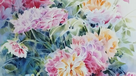 Акварельная техника акриловыми красками на холсте. Пишем работу "Моя радость". 55/46