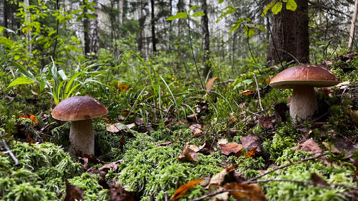 БЕЛЫЕ ГРИБЫ ВСТРЕЧАЮТСЯ НА КАЖДОМ ШАГУ , ИХ ПРОСТО МИЛЛИОНЫ хотя идёт дождь !