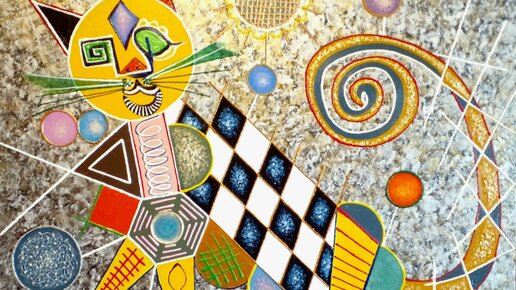 Танцующий кот Багуа 95х95 хм акрил, художник Олег Черкасов. 18 октября 2022 г.