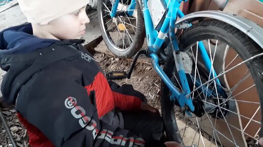 Накачиваю колёса велосипеда компрессором от холодильника