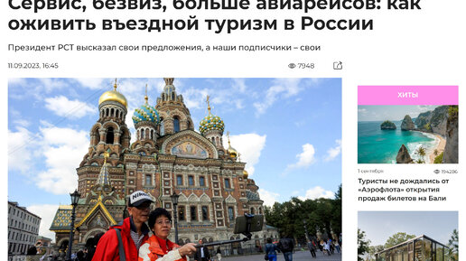Новости туризма 11/09/2023 Сервис, безвиз, больше авиарейсов: как оживить туризм в России #туризм