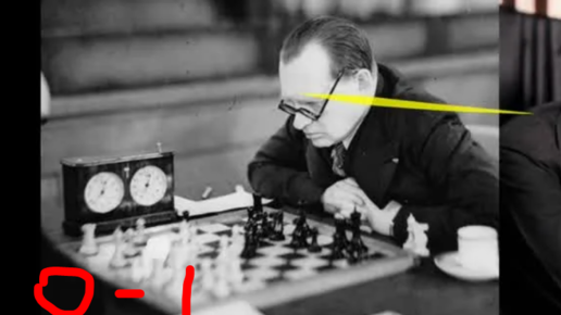 Александр Алехин за черных снова красиво обыгрывает соперника - на этот раз Илью Рабиновича. На чемпионате СССР по шахматам в Москве, 1920