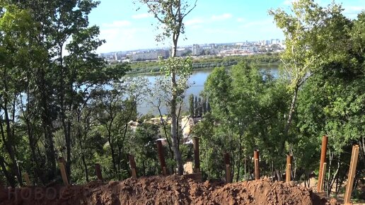 Проводятся работы по укреплению склона на Гребешковском откосе над улицей Черниговской // Сентябрь 2023