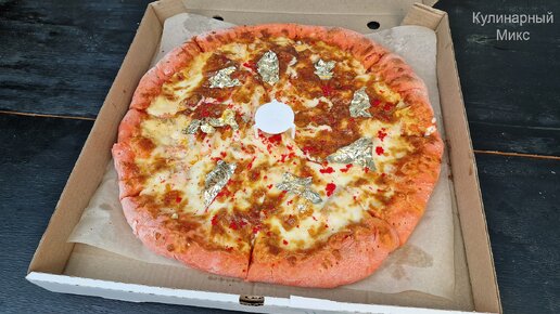 Купила пиццу с пищевым золотом 24 карата всего за 1400 рублей на полтора килограмма (пробую впервые есть золото, как на вкус и как выглядит)
