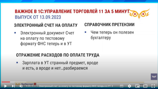 Электронный счет на оплату по тестовому формату ФНС теперь и в УТ
