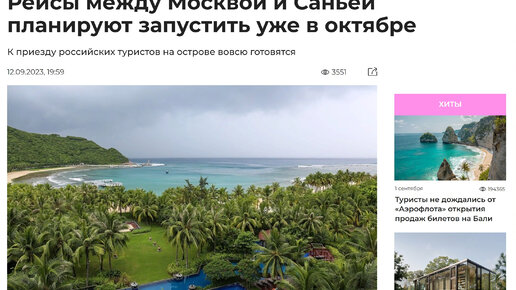 Новости туризма 12/09/2023Рейсы между Москвой и Саньей планируют запустить уже в октябре #туризм