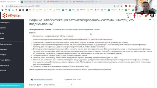 Задание. Акт классификации (Организационное и правовое обеспечение ИБ)