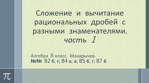 Алгебра 8 класс. Сложение и вычитание рациональных дробей с разными знаменателями_часть 1.