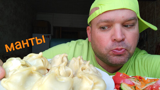 МУКБАНГ МАНТЫ с мясом и салат из овощей/ОБЖОР ням ням