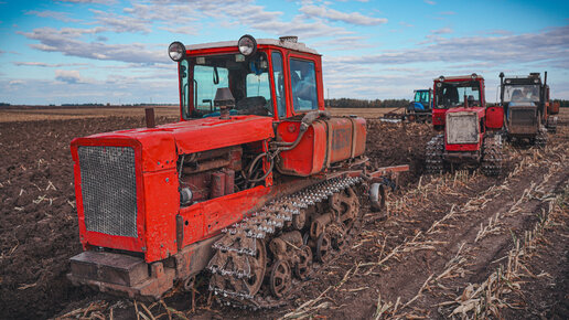 КРАСИВАЯ ВСПАШКА ПОЛЯ НА СОВЕТСКИХ ГУСЕНИЧНЫХ ТРАКТОРАХ ДТ75