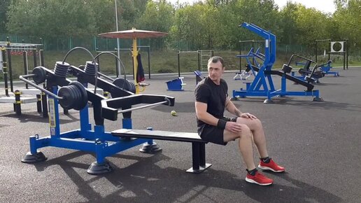 ЖИМ НА ГРУДЬ и ТЯГА РУКАМИ !!! Тренировка на классных тренажёрах на свежем воздухе !!! моя тренировка от 12.09.2023 г