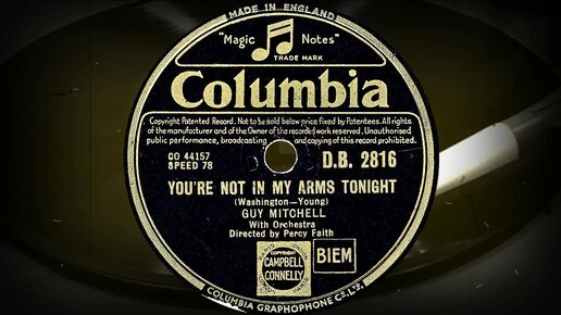 YOU'RE NOT IN MY ARMS TONIGHT - GUY MITCHELL With Orchestra Directed by Percy Faith (1951)