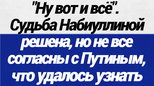 "Ну вот и всё". Судьба Набиуллиной решена, но не все согласны с Путиным, рассказываю, что удалось узнать