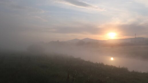 Туманный рассвет на реке Миасс.