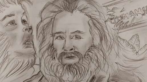 Джуманджи. Рисунок на основе кадров фильма. Песня: "End Titles" (James Horner). Цитата из фильма взята в интернете в открытом источнике