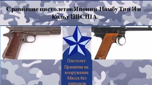 Сравнение пистолетов Японии Намбу Тип 14 и Кольт 1911 США