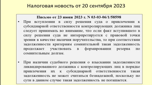 Учет задолженности ликвидированного должника при субсидиарной ответственности контролирующих лиц