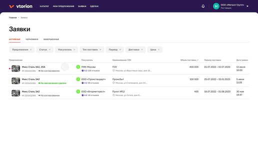 Далее: Следите за ходом сделок по лома | Как отслеживать статус заявок и работать со спецификациями на платформе Vtorion